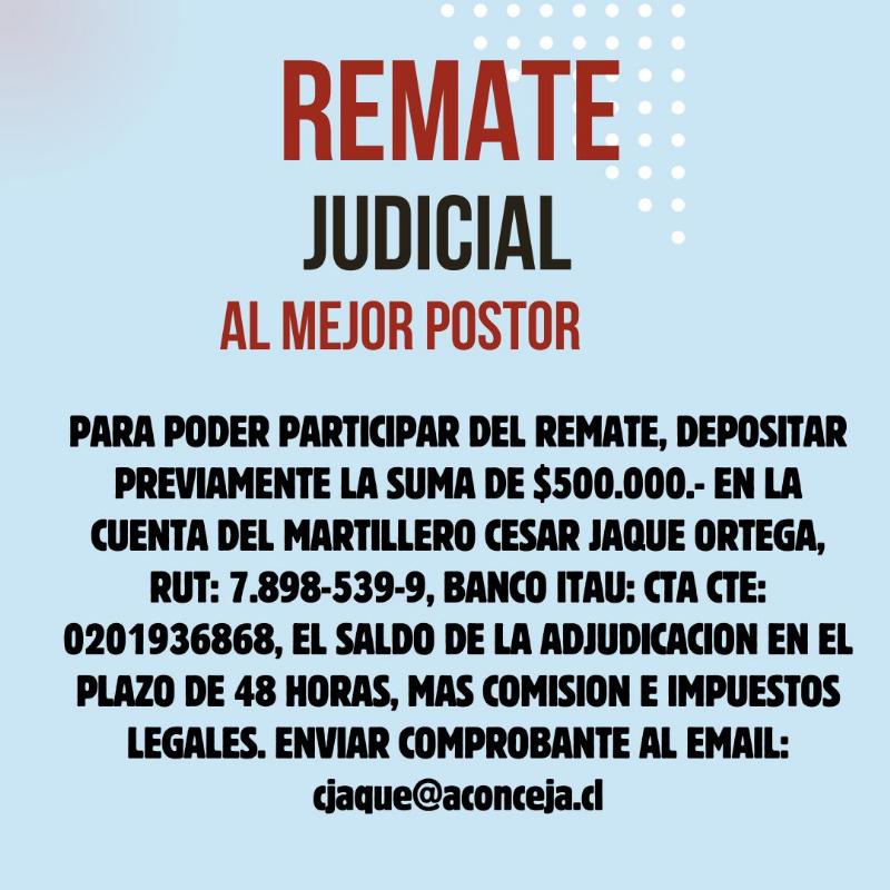 REMATE JUDICIAL AL MEJOR POSTOR. VIERNES 14 DE NOVIEMBRE 12:00 HRS , LORD COCHRANE 903, SANTIAGO.