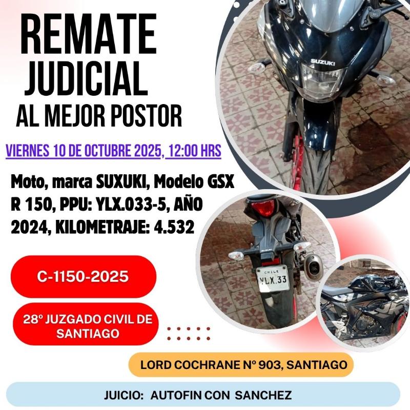 REMATE JUDICIAL AL MEJOR POSTOR. VIERNES 10 de OCTUBRE 2025 , LORD COCHRANE 903, SANTIAGO.